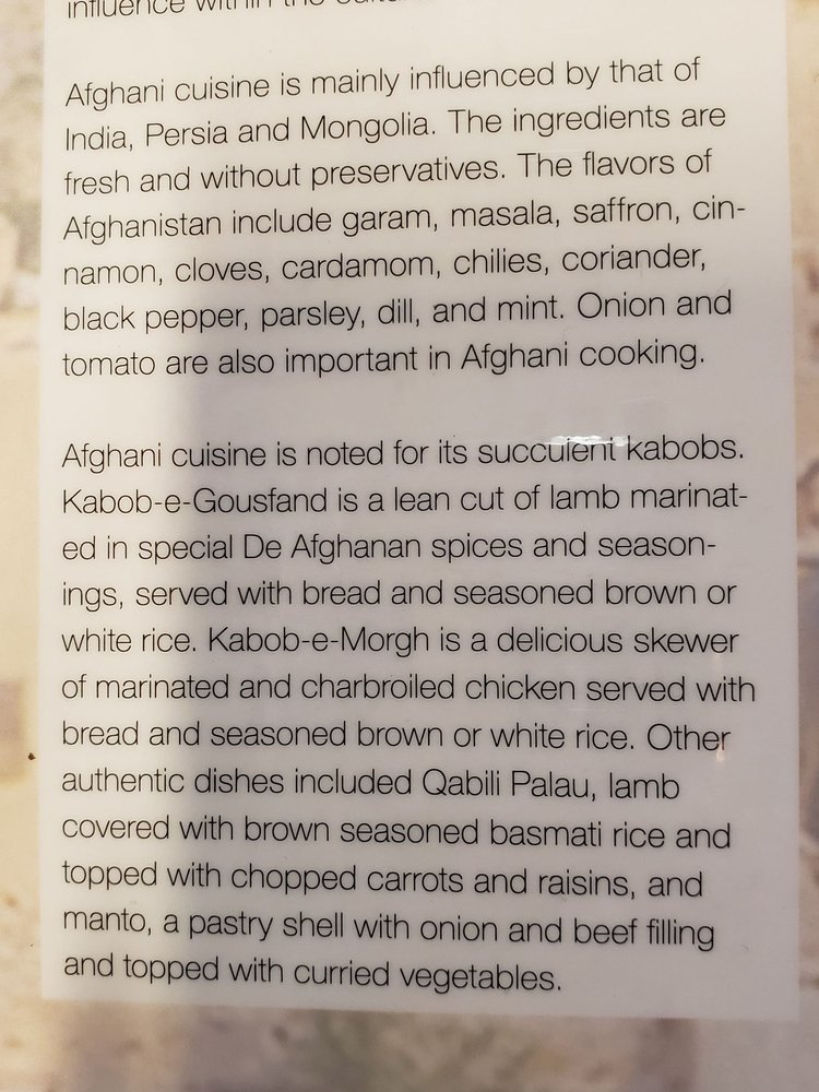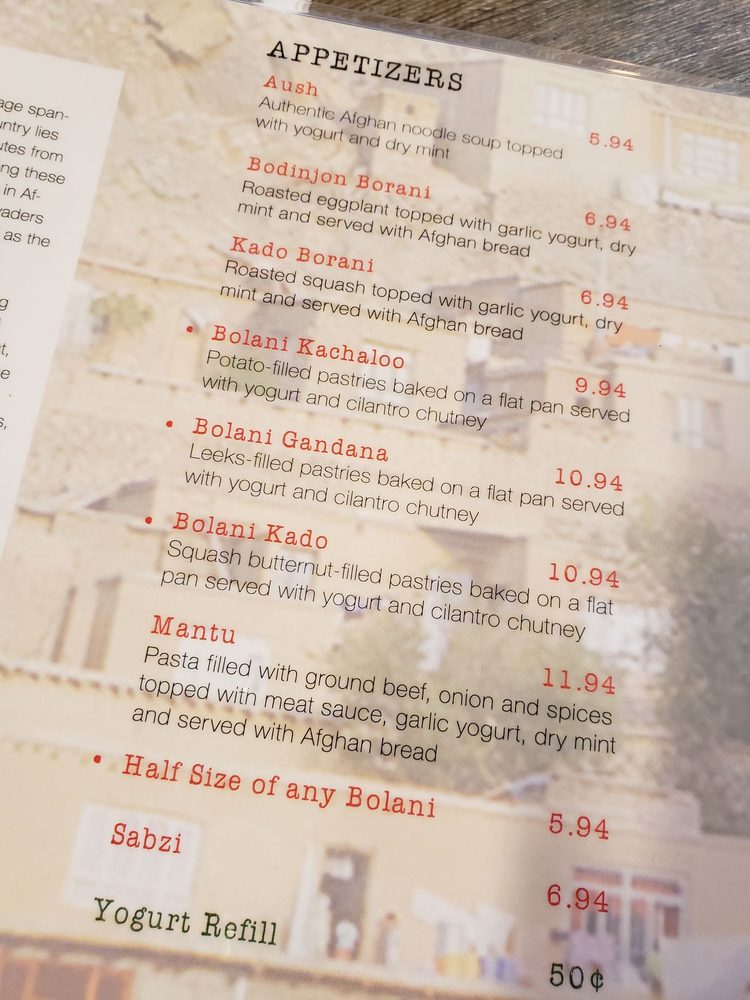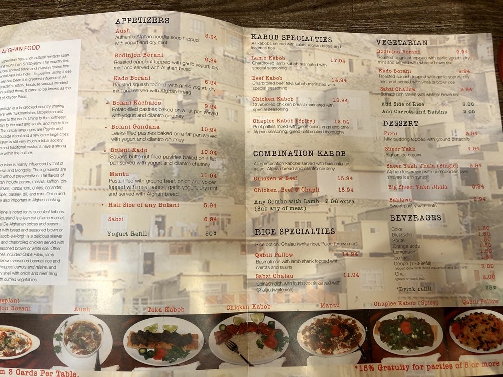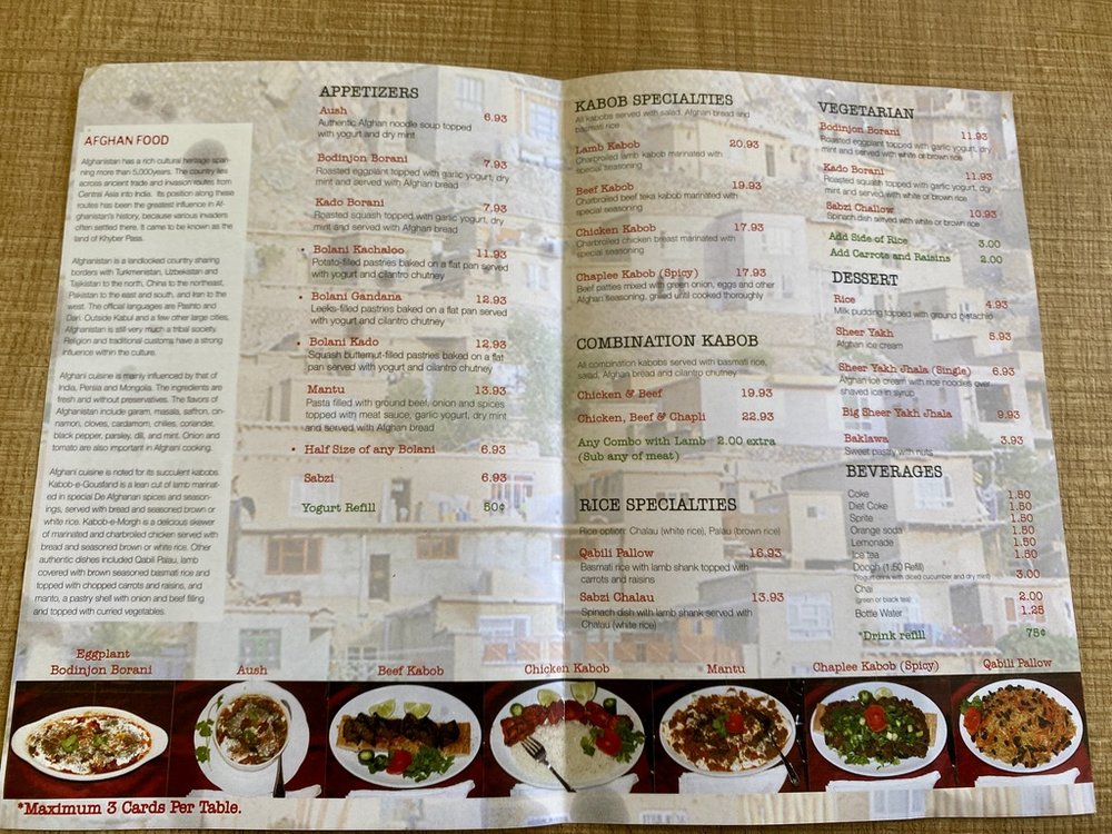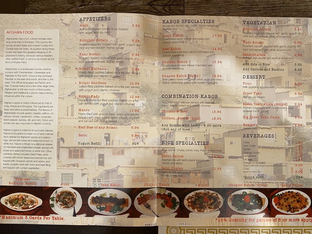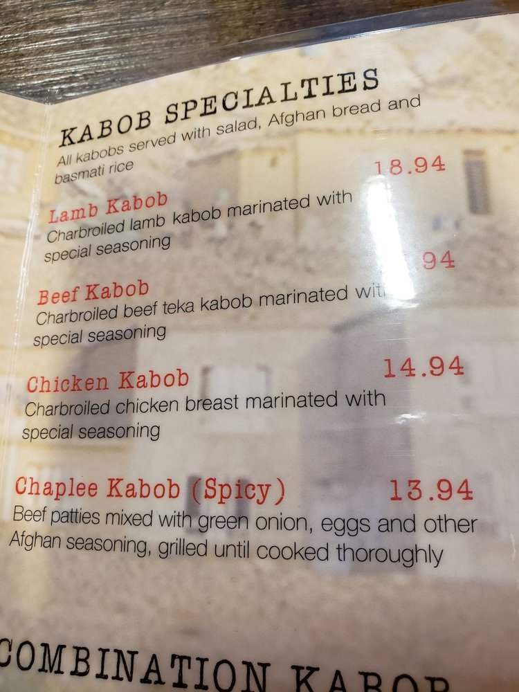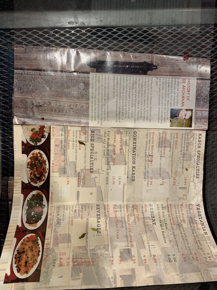 De Afghanan Kabob House Menu